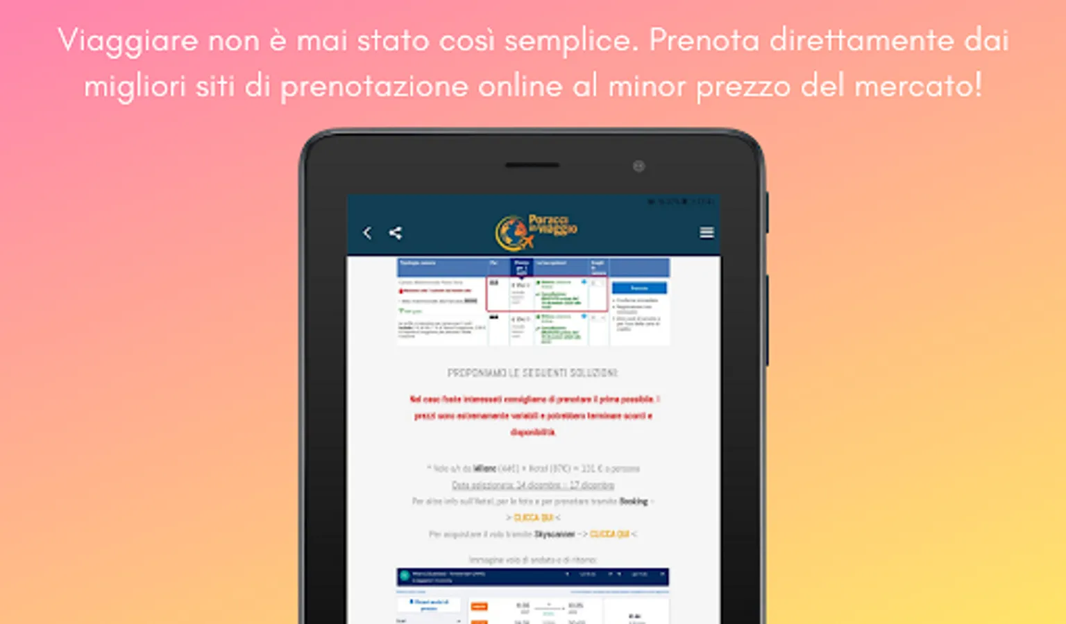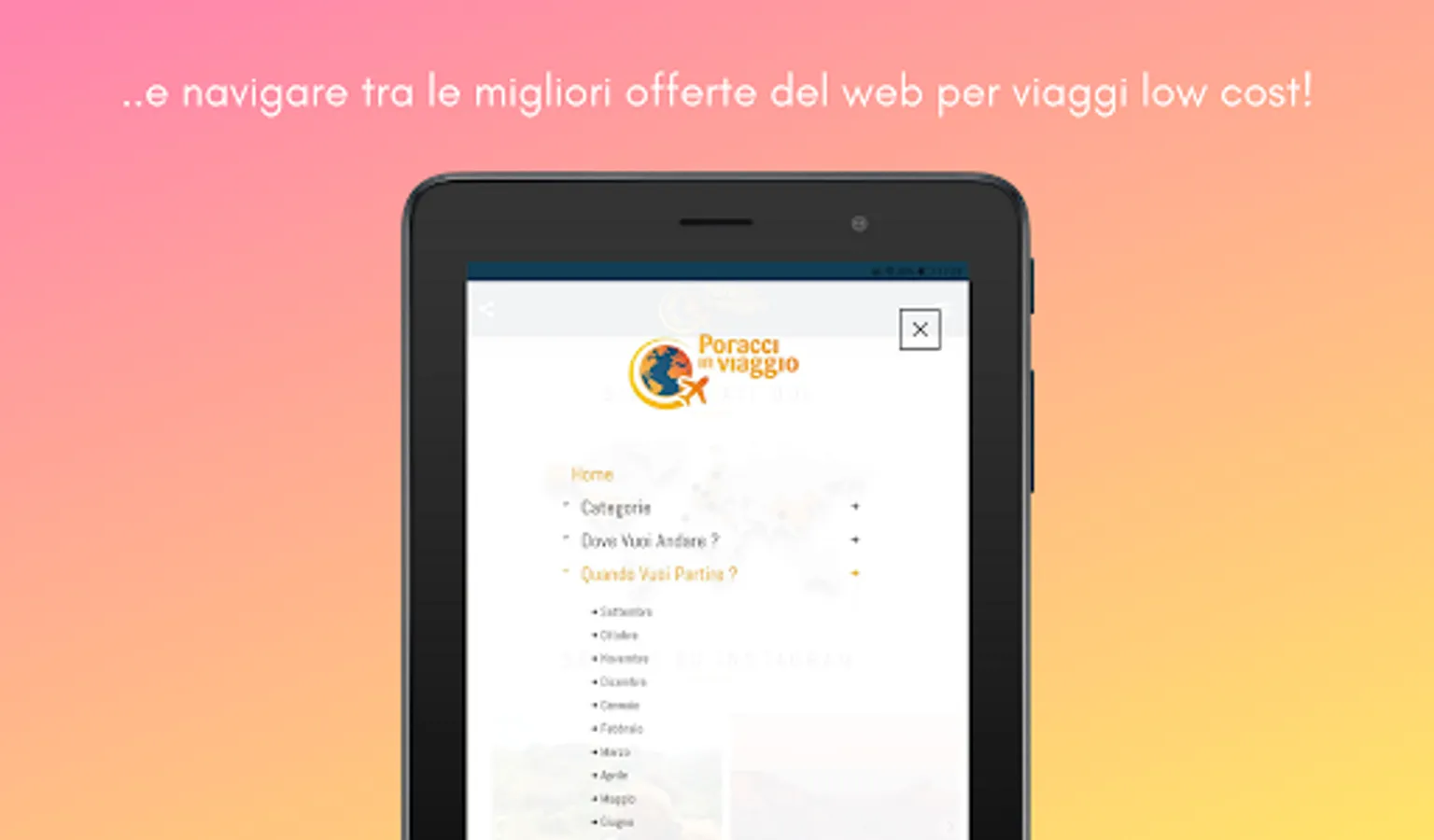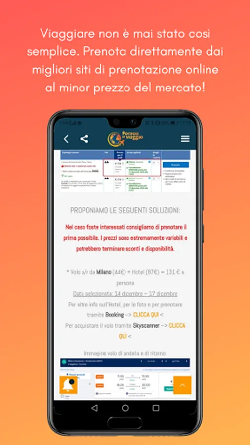 Poracci In Viaggio is an extremely simple app to use and is considered by many to be the best platform for low cost travel offers in circulation. We have not created a chaotic search engine, there are already too many of them, but we have focused everything on functionality and practicality. Every day on www.poracciinviaggio.it we publish offers for the destinations that inspire us most, trying to include departures from most of the airports in Italy (availability permitting), indicating practical information and details and inserting direct links to book.