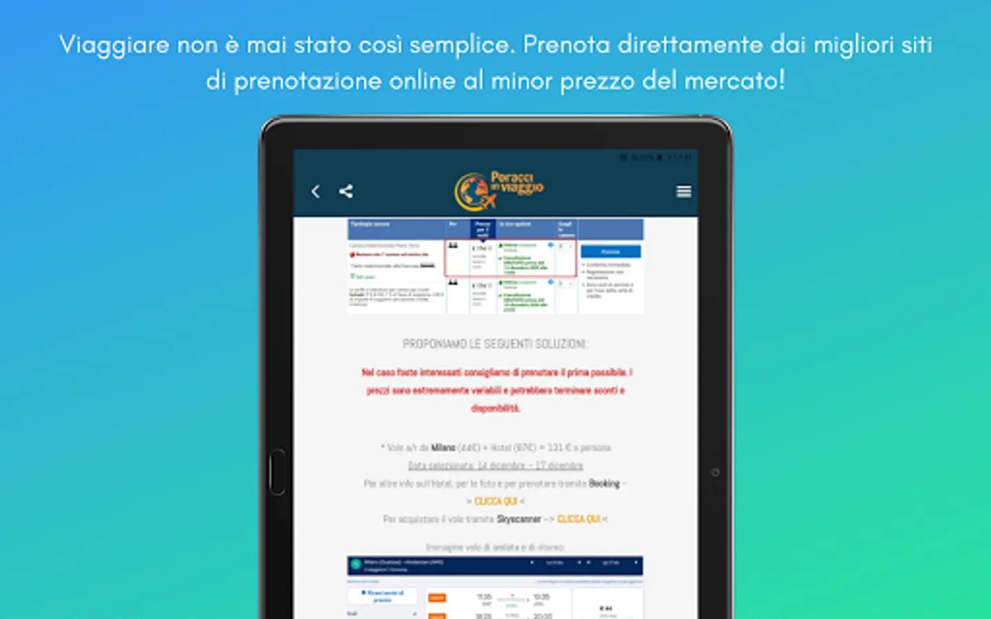 Always keep in mind that the more time passes from the publication of an offer, the more likely it is that the prices we offer will increase and that the availability will run out, so we always recommend booking as soon as possible. In this regard, given the very high importance of timing, the Poracci In Viaggio App has a very efficient Push Notification service, capable of alerting, in a clean and non-invasive way, every time we publish a very new offer.