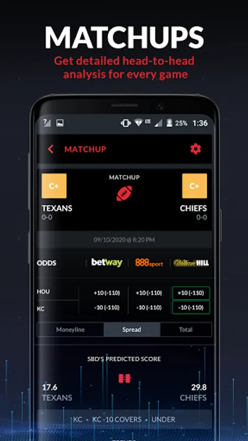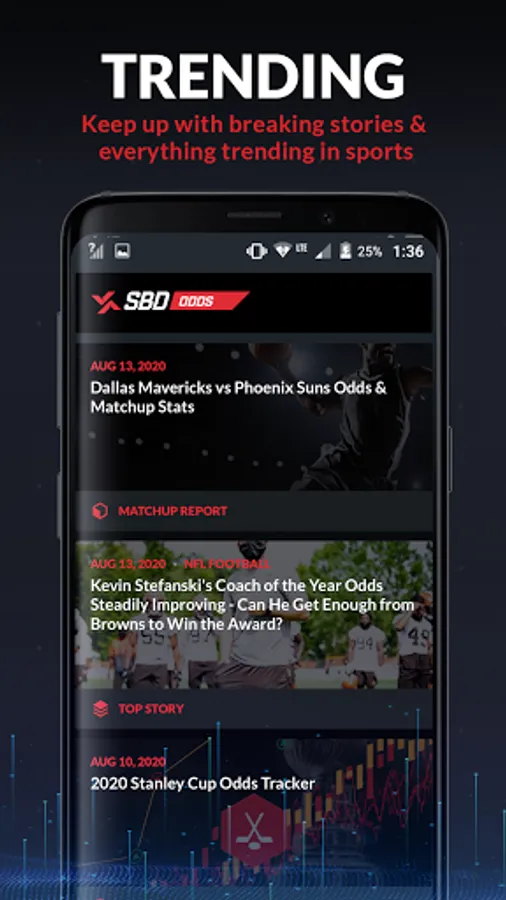 SBD Odds is the only app you need to make smarter bets. From entire leagues to specific teams, SBD Odds displays the detailed data you want while allowing you to easily hide the rest.