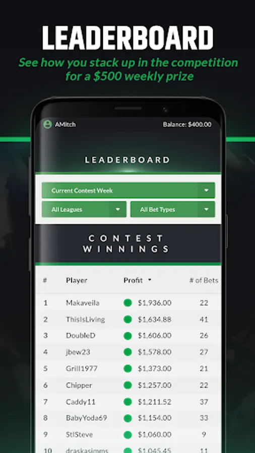 and join the weekly competition for a $500 cash prize. Take on your friends and bettors from around the world as you run up your virtual bankroll and move up the leaderboard. It’s the perfect place to get the rush of putting down action on your favorite leagues and teams with no financial risk.