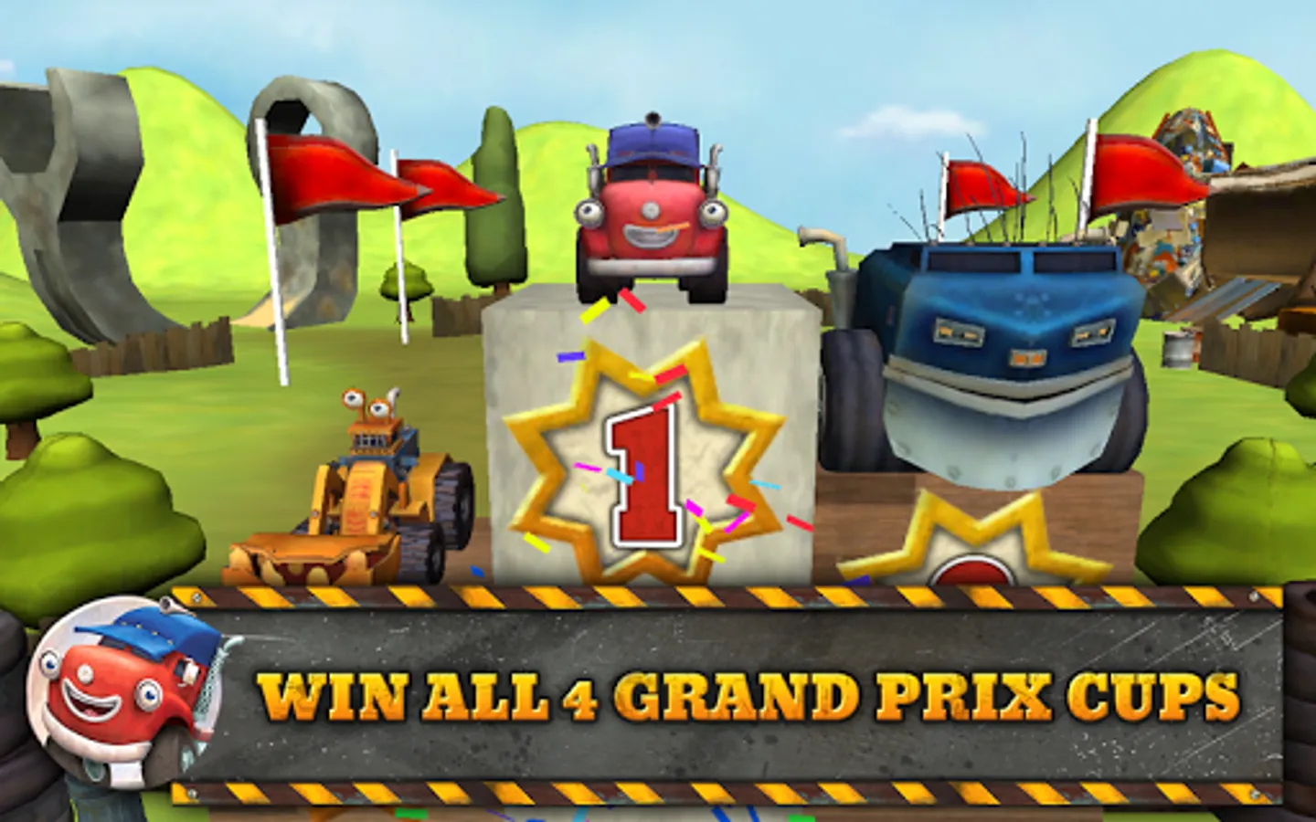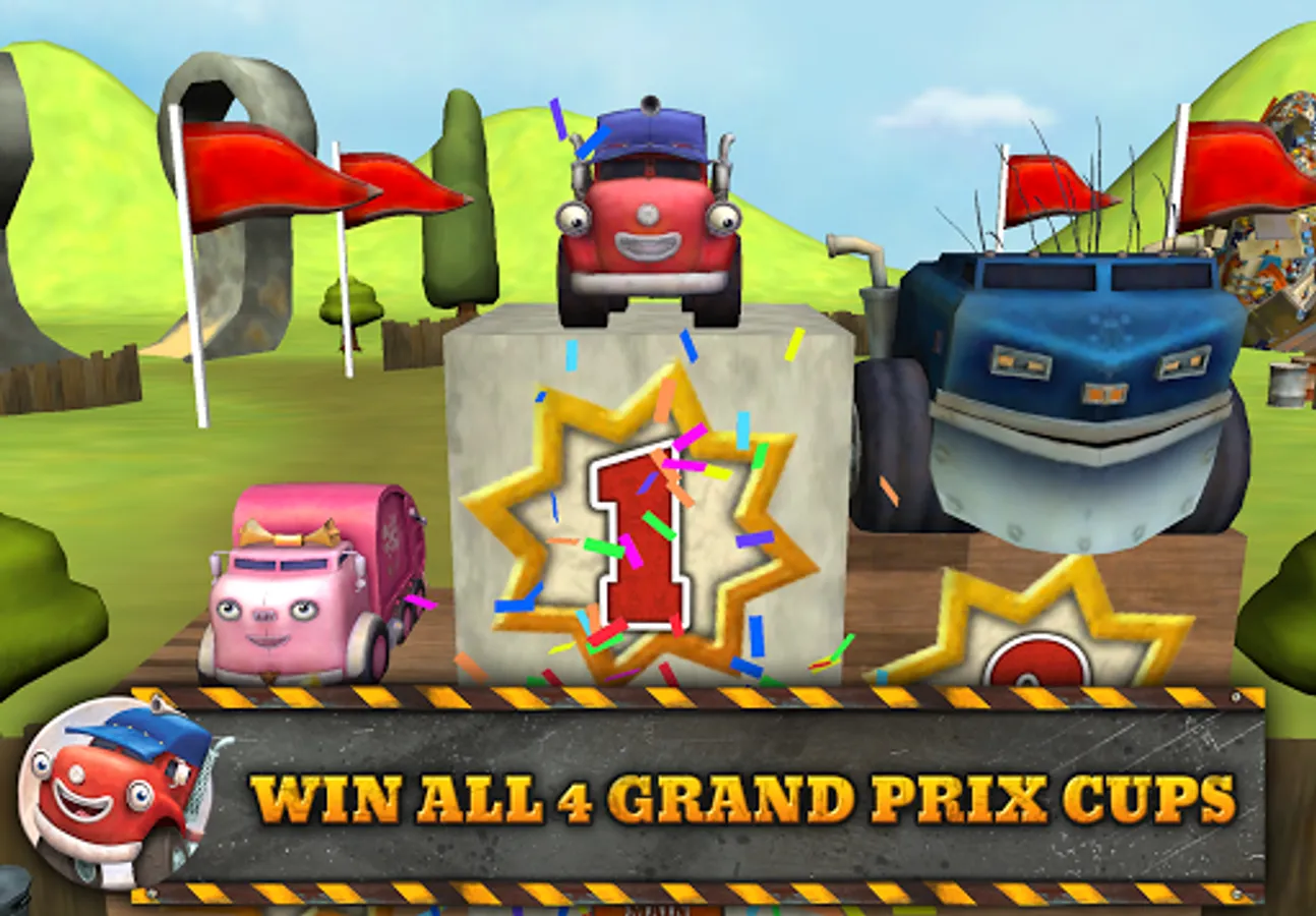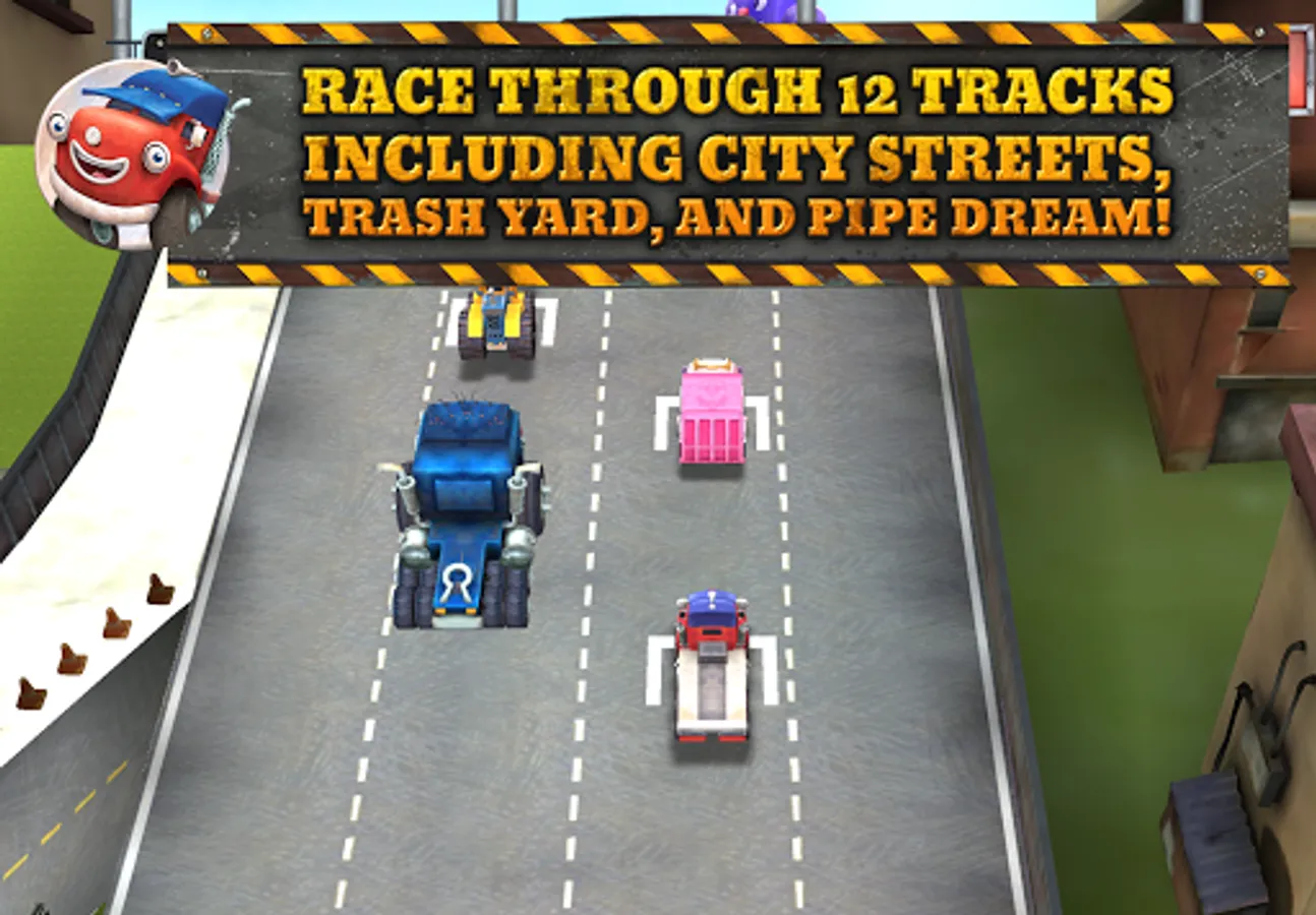 Race with your favorite Trucktown characters as you skid, swerve, and speed through each track to claim victory and win the tournament cups! Outsmart your opponents by collecting speed boosts, smashing into others, and outmaneuvering each racer.