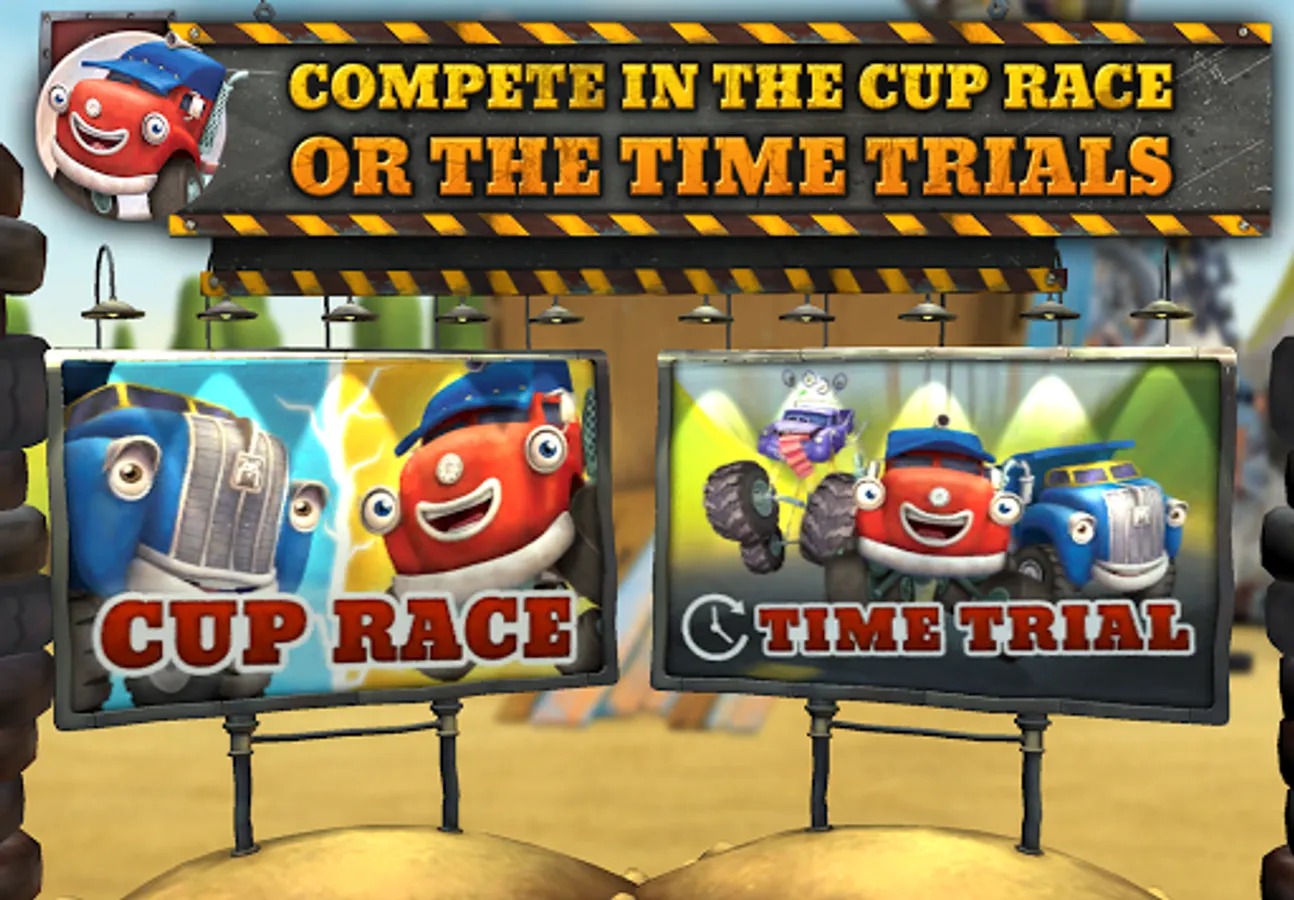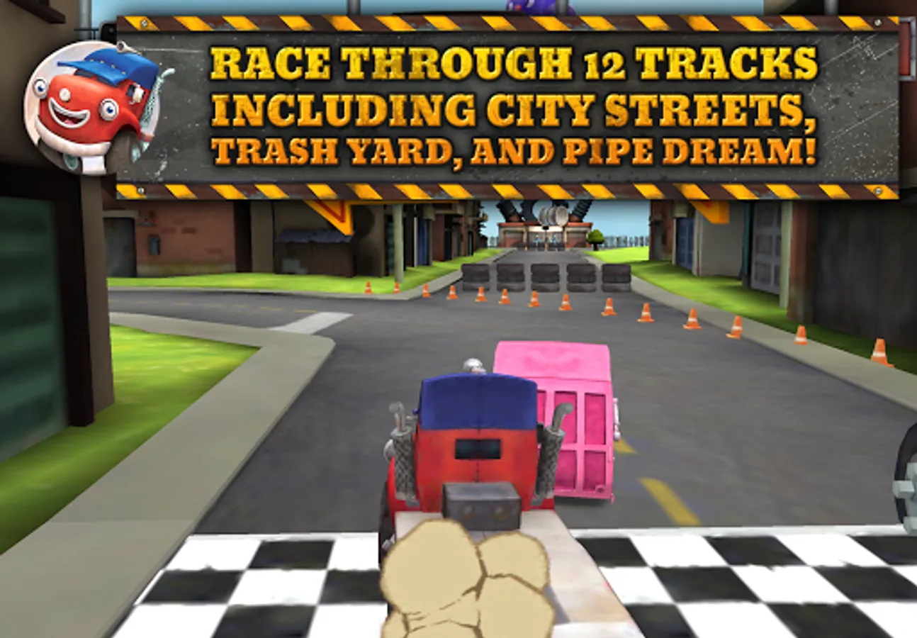 Race with your favorite Trucktown characters as you skid, swerve, and speed through each track to claim victory and win the tournament cups! Outsmart your opponents by collecting speed boosts, smashing into others, and outmaneuvering each racer.
