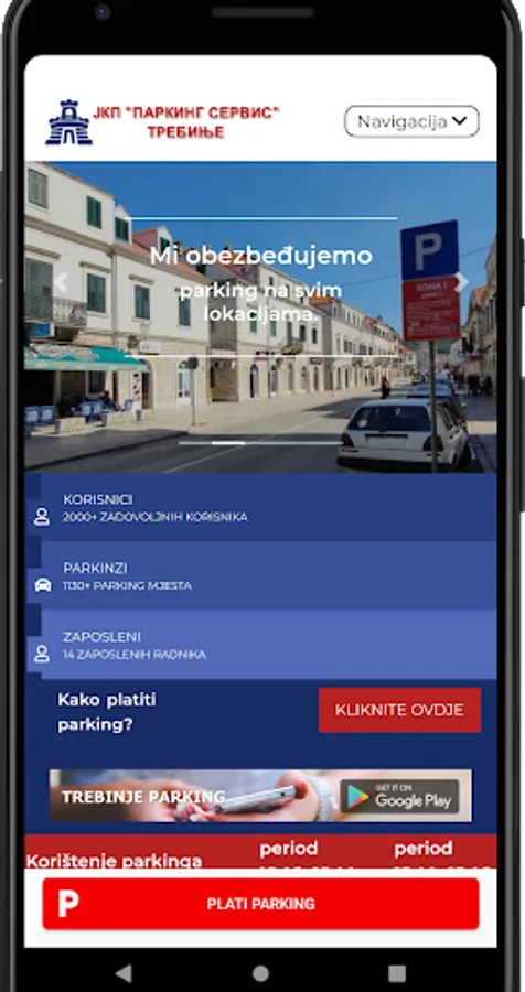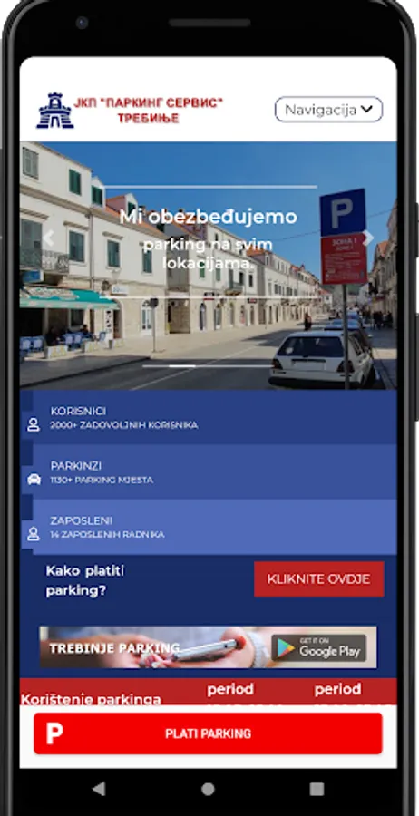 Through the android application, you can find out about all the events in JKP "Parking servis" d.o.o. Trebinje, see price lists and payment methods and make an SMS payment for parking.