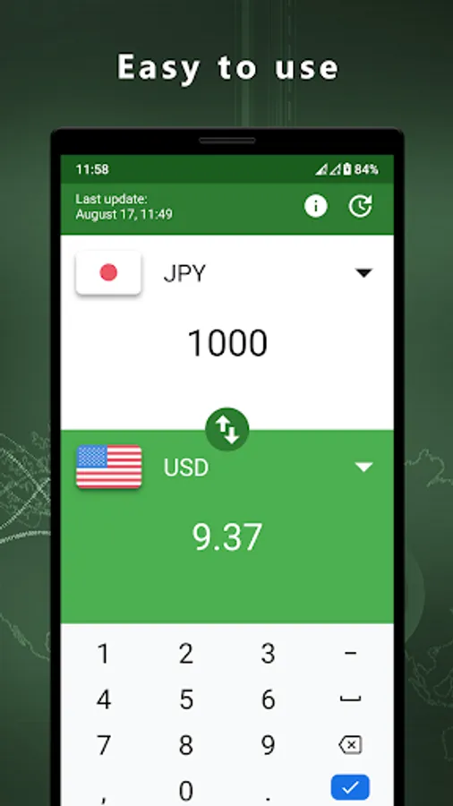 ✔️ Really useful for traveling. You will know the exchange rates in your destination country.