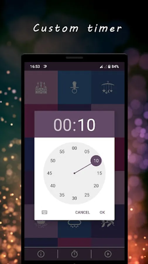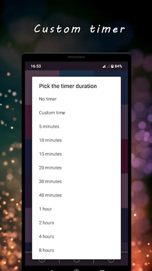 ✔️ If desired, add a timer and customize the time you want to play the relaxing music.