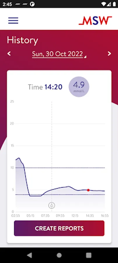 • The MSW Glucose® App continuously captures calibrated glucose results during the sensor period of wear.