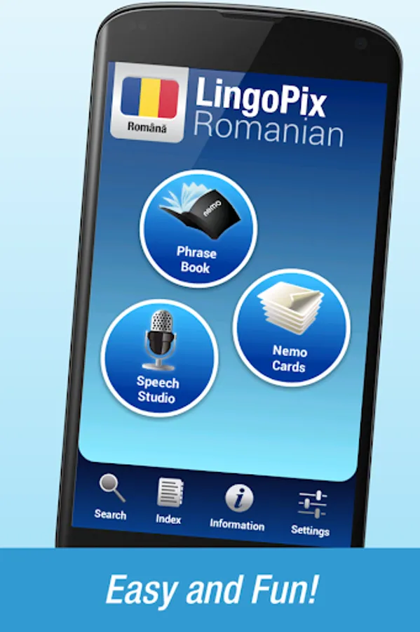 Nemo is designed to start you speaking the most useful words in Romanian immediately and confidently. With millions of downloads from around the world, Nemo is now available for Android phones and tablets.