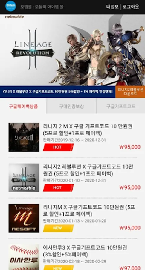 2. 다양한 모바일게임과 구글페이백 할인 제휴