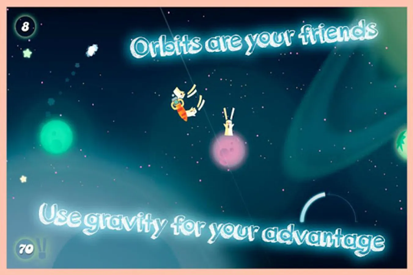 Get ready and charge the Space Carrot Rocket to blast your way dodging meteor rocks and getting planet to planet saving your buddies in the way.