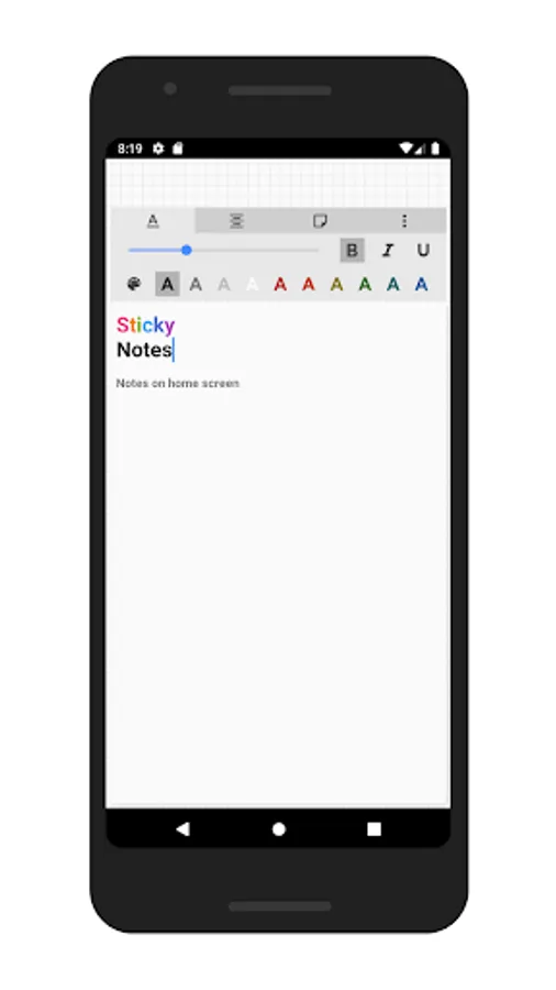 Editing a sticky note: Tap the sticky note widget on the home screen to open the editing screen.