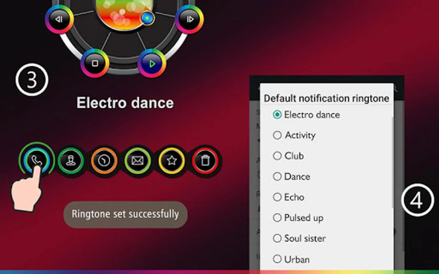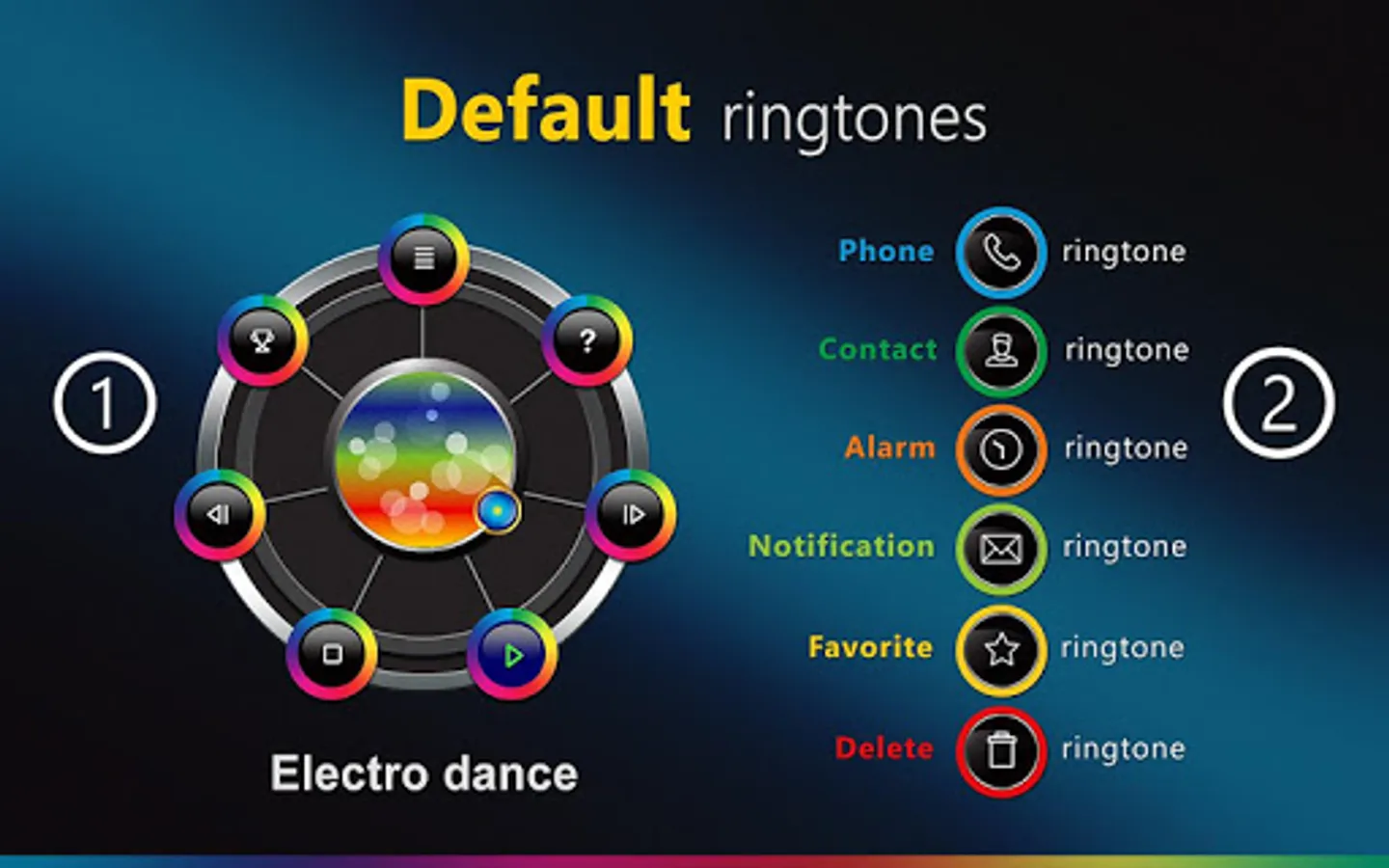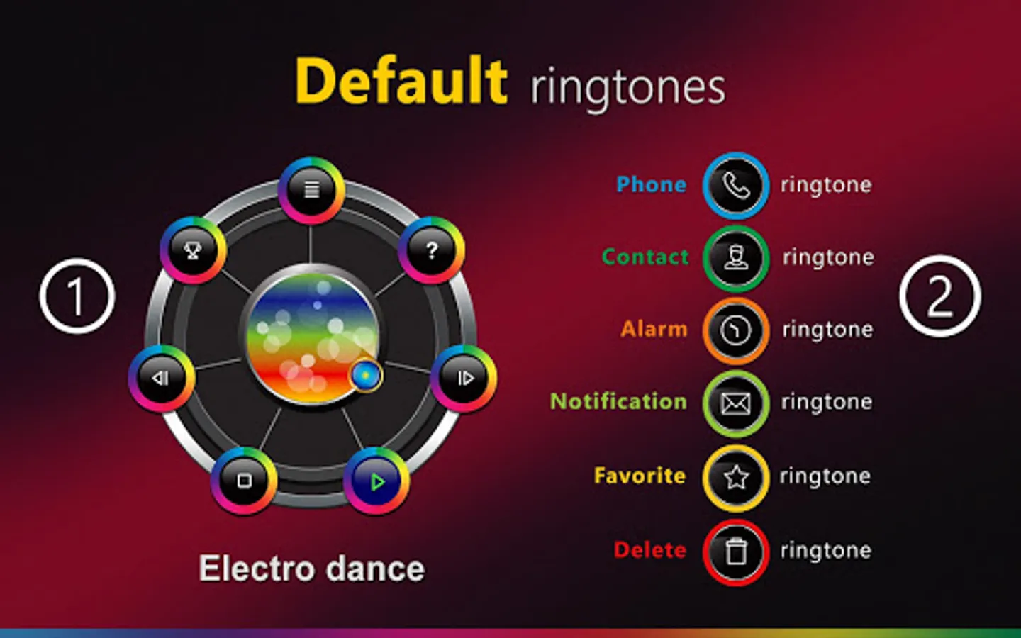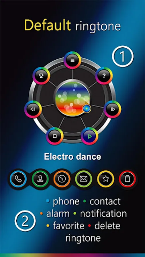* Make a default ringtone, personal contact ringtone, default notification, default alarm, delete ringtone, select and mark your favorites;