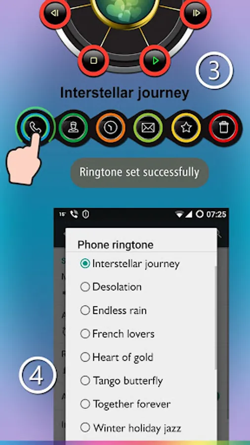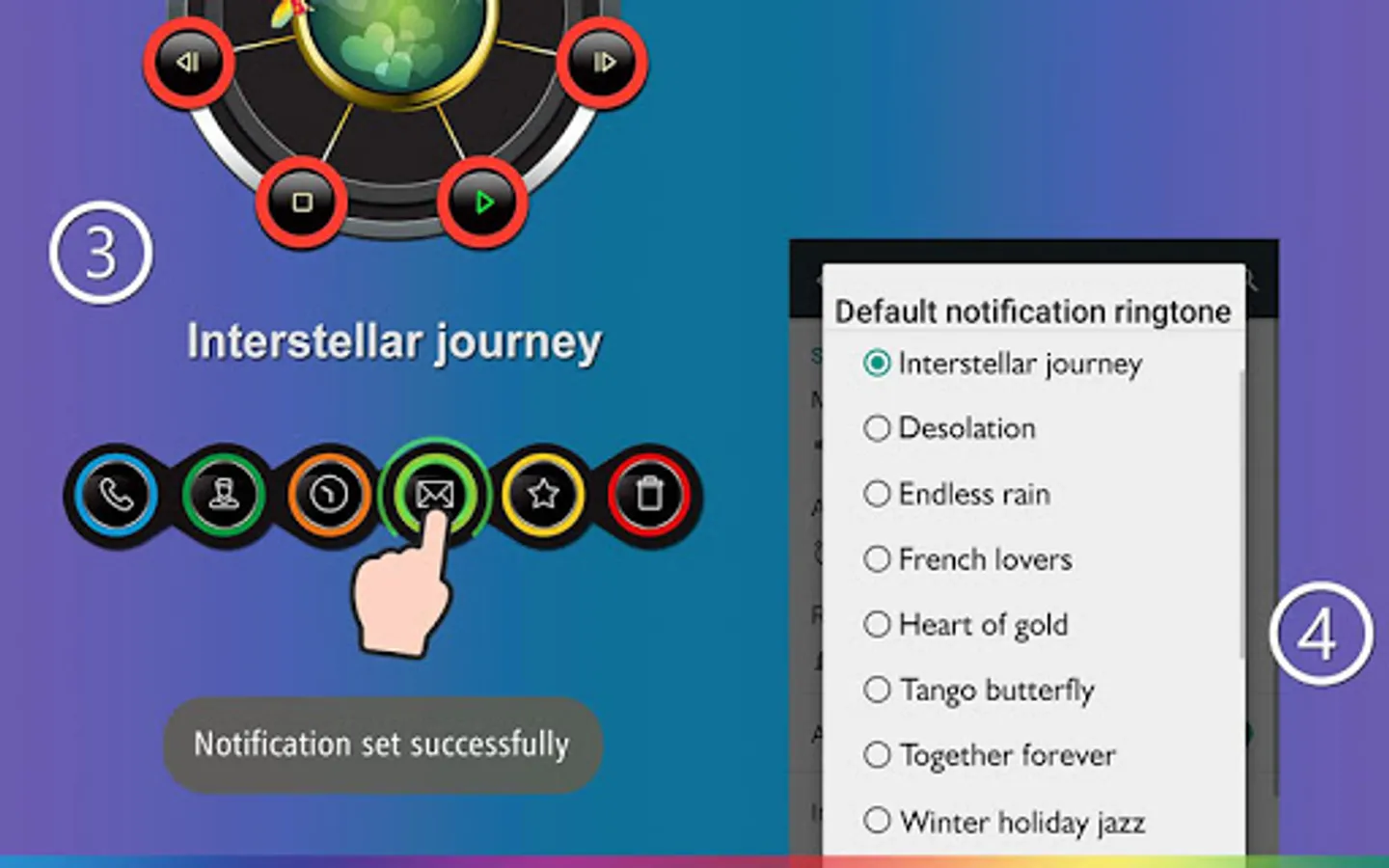 * Make a default ringtone, personal contact ringtone, default notification, default alarm, delete ringtone, select and mark your favorites;