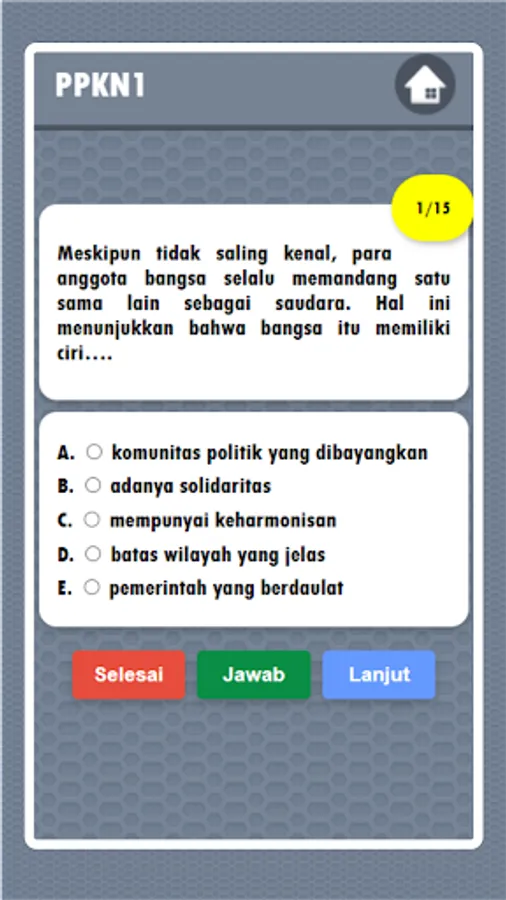 The Vocational School Question Practice Series is an educational game that focuses on questions for SMK students that are easy to use or operate. In this game, students can practice to prepare for daily, semester, and final exams. This game is made simply so that it can be easier to use in a cool and exciting way.