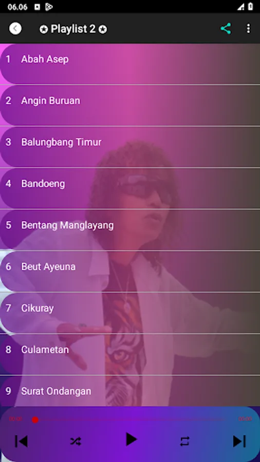 This application contains a complete offline collection of Sundanese Yayan Jatnika pop songs. For those of you who are fans of Sundanese pop songs from Yayan Jatnika, it is mandatory to have this application. Because the advantages of this application are a display that is easy to understand and with only one install, you can enjoy the songs in this application offline without reducing your quota.