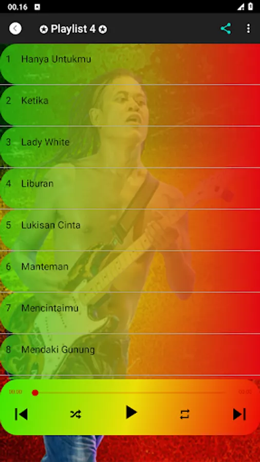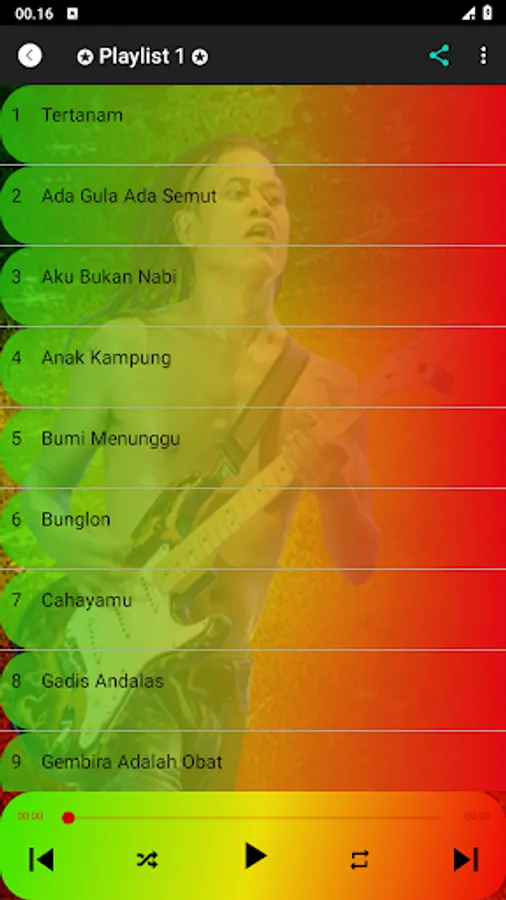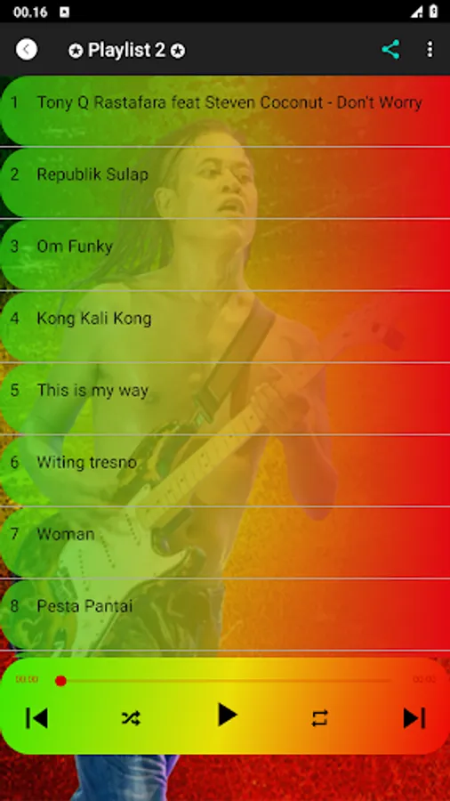 This application contains a collection of reggae genre songs sung by musician Tony Q Rastafara. The Tony Q Rastafara Reggae song application is perfect for lovers of reggae songs to enjoy, especially Indonesian reggae songs. You can enjoy the songs in this application offline without reducing your quota. Only once installed, you can enjoy Tony Q Rastafara songs, such as Paris Van Java, Om Funky, Manteman, Greetings of Peace, and many more.