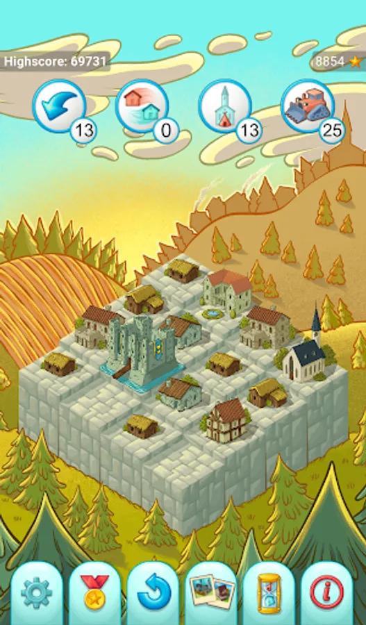 * Swipe tiles to merge them into new more advanced buildings!
