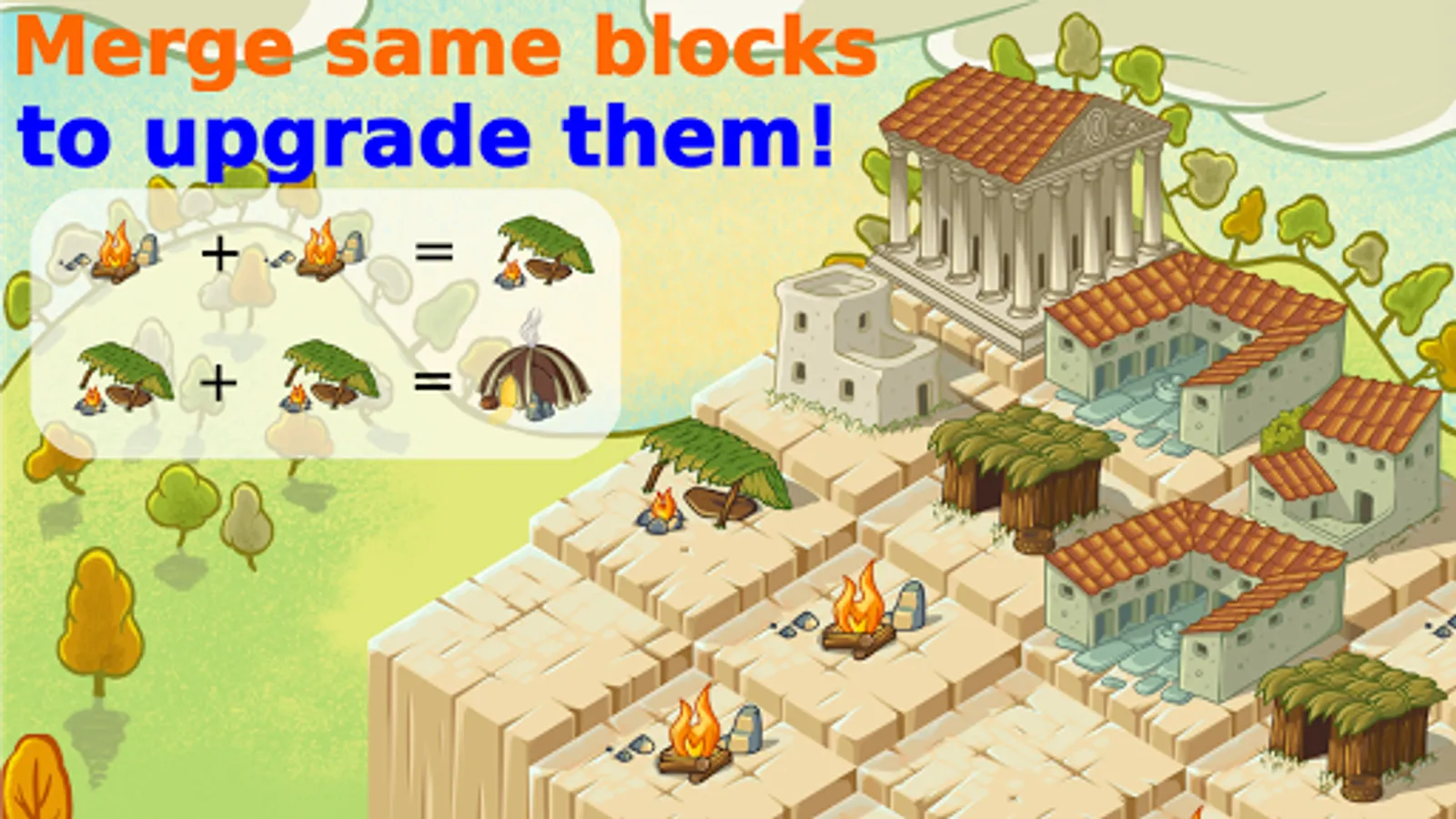 Merge the same blocks together into more advanced buildings and build from a small town up to the greatest cities of the human civilization! With a simple swipe build the greatest empires the human history has ever witnessed and become the best town builder in the world!
