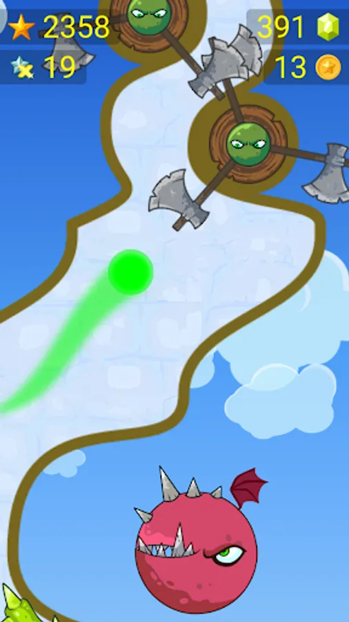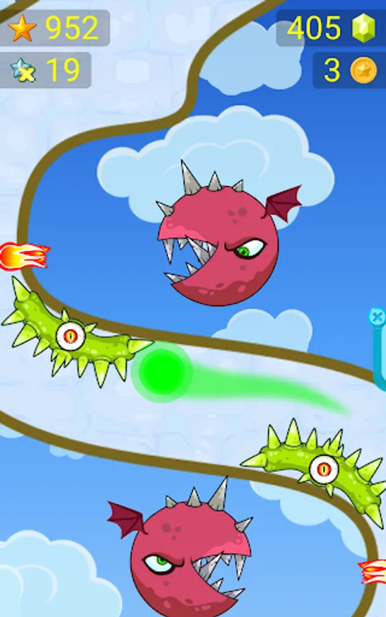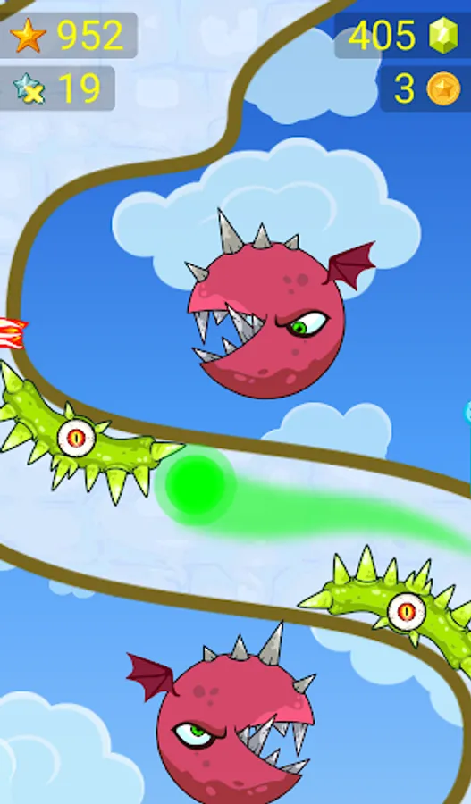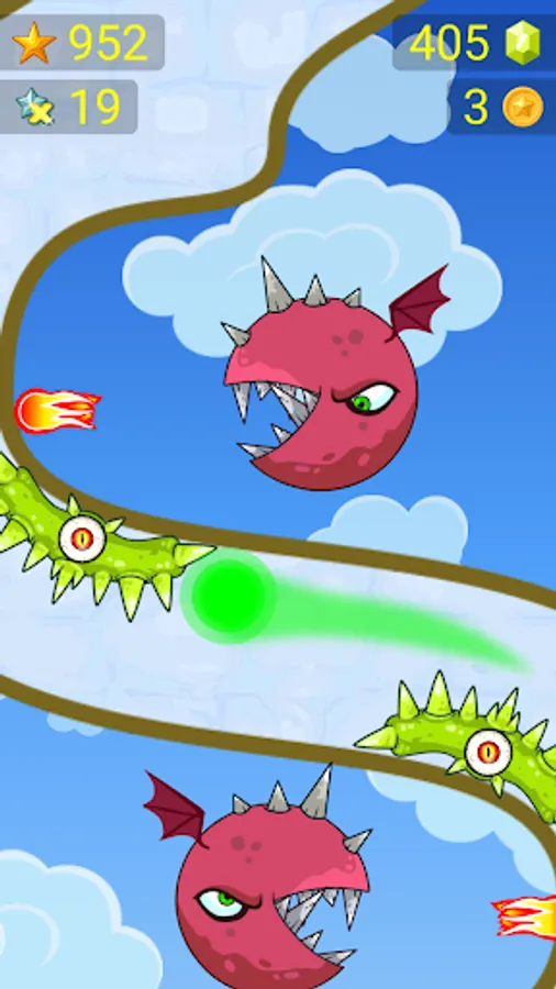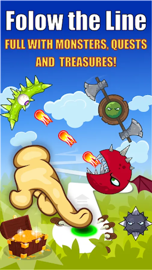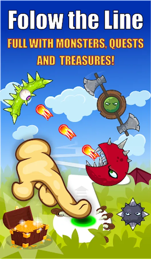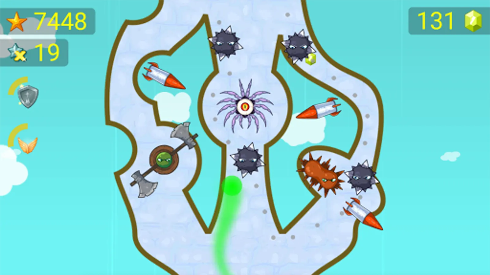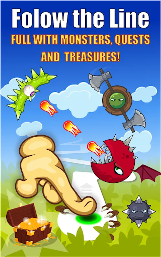 Drag your skillful finger, rush through the randomly generated maze full with dancing monsters, follow the line and try that your fingers not get eaten! Follow the Line Monster Run is the brand new monster powered sequel to the infamous game Follow the Line 2D Deluxe. Don't touch the borders unless you have wings, be aware of the rolling obstacles unless you have a shield. Slither as far as you can, avoid the obstacles and unlock new challenges. Follow the path in the sky and try to be the best, test your skills with your skillful fingers and see which one of your friends can beat your score!