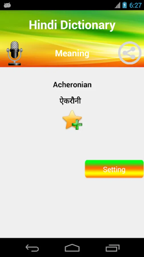 One of the Best english to hindi dictionary in the market. It has more than 58000 english words with hindi meanings, synonyms and antonyms. It has voice enabled pronunciation for english words and doesn't need internet connection. Predictive search will make your life easier.