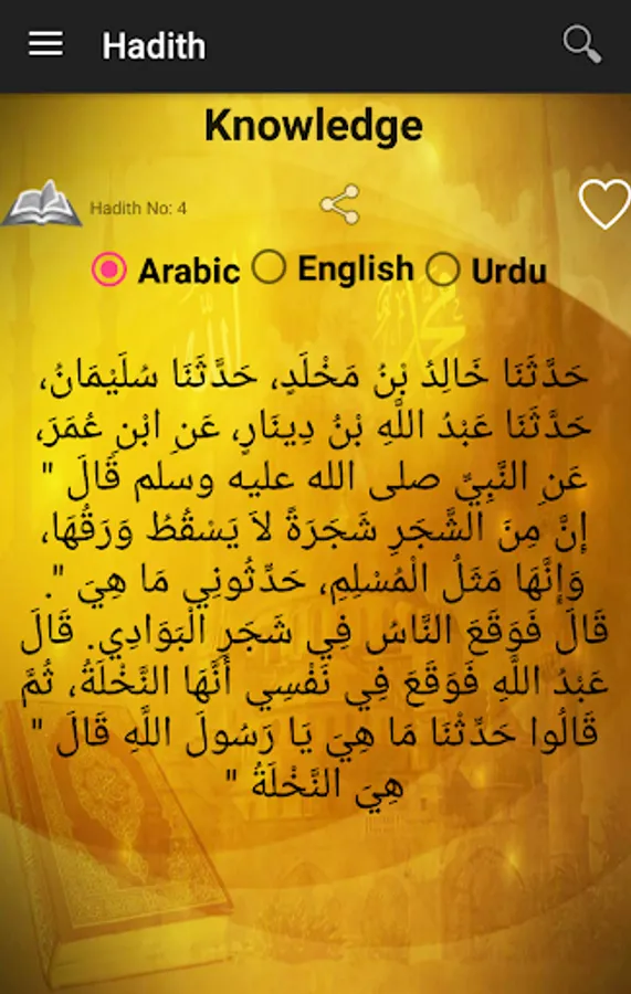Translation of Hadiths in available Urdu and English languages.