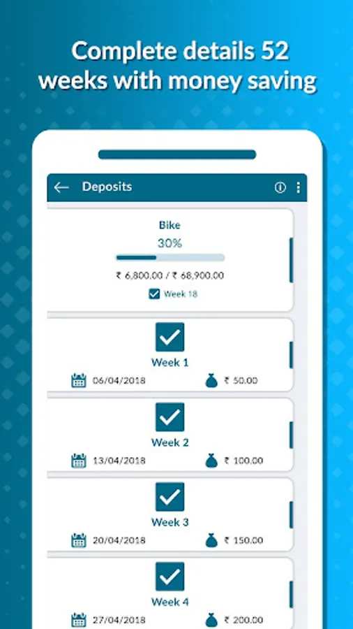 - Through the every week reminder function, you'll never forget to save your money.