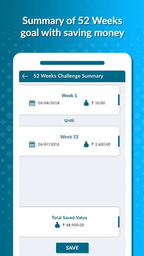 - Customize your savings period, 52 weeks/365 days.