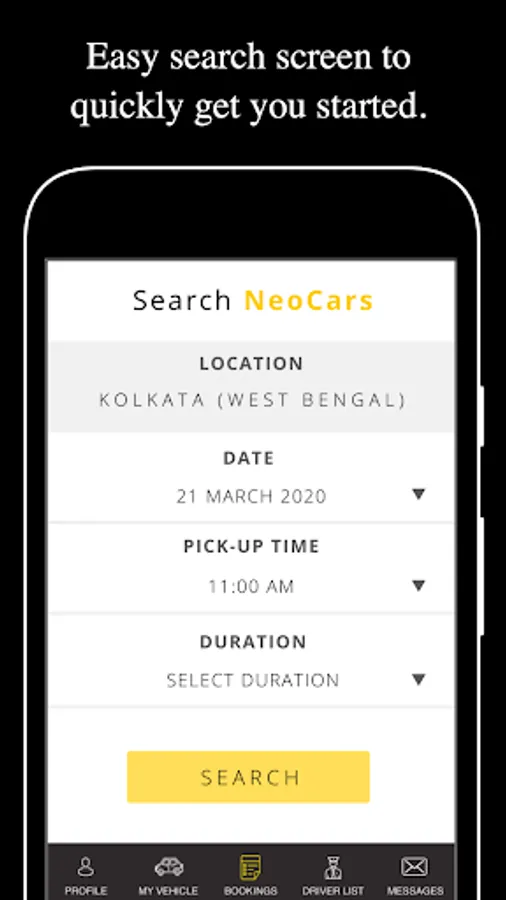 Pre book a rental cab with driver via the NeoCars app for car rental and have your car and driver waiting at your pick-up point to take you to your destination.