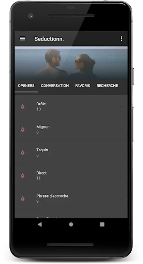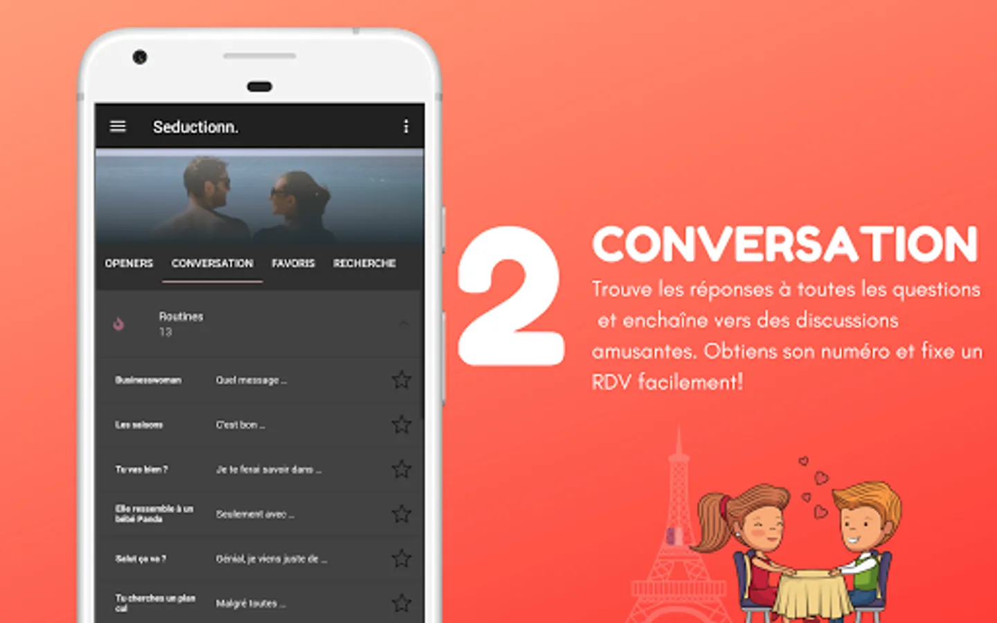 Seductionn should help you find inspiration and the perfect catchphrase to start the conversation with the girls. It's up to you to adapt it according to the context (its photos and description mainly).
