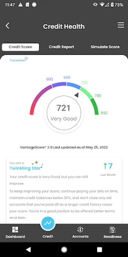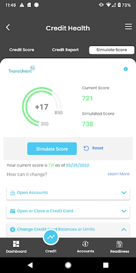 Your credit score is prominently displayed in your dashboard - and it doesn't cost you anything. Track changes month to month and learn the key factors that make up your score like length of credit, timely payment history, utilization of credit, total accounts opened and inquiries. Don't worry, this is a "soft credit pull" meaning there is no impact to your score by checking it. Look through your credit report for accuracy. Access helpful articles that explain credit bureaus, credit score, and more.