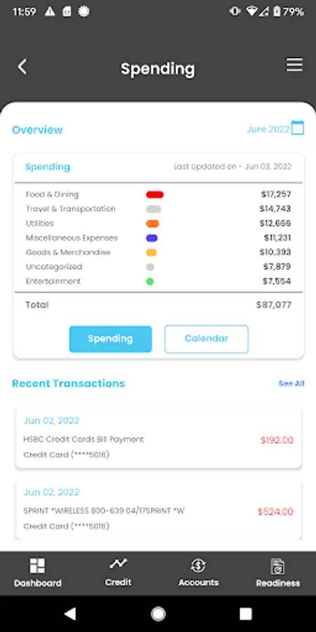 Understand what you are spending and where. Track your spending by categories and drill down into subcategories. Receive alerts if you are off track or confirmation if you are on track.
