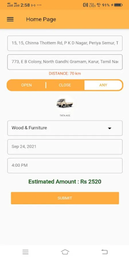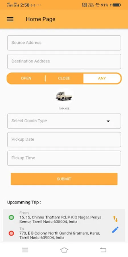 The Kargos started in the fond memory of Thiru E.M.Subramanian Managing Director of Sri Thindal Murugan Transport, First time in Erode, goods will be shipped by Kargos is an amazing way, New app for booking rental auto online, Kargos will provide you with quality service, Live tracking of your goods, reasonable rent without bargaining, booking a vehicle anywhere at any time, knowing the details of rent and distance clearly to carry your goods safely.