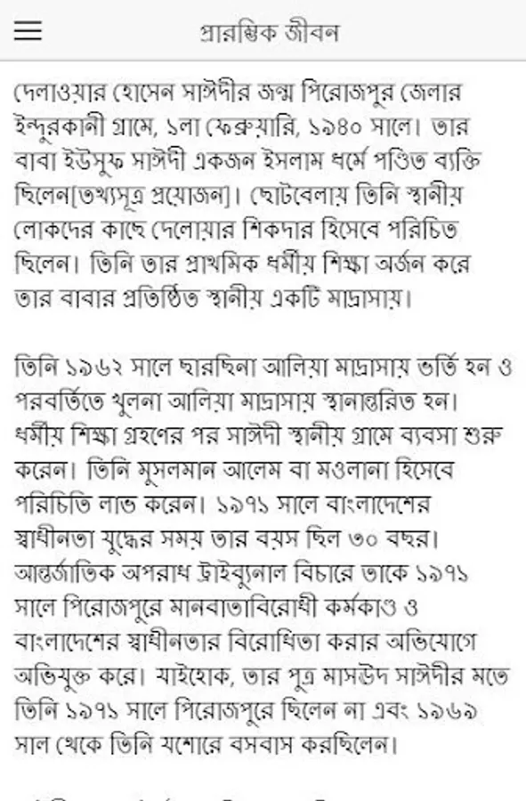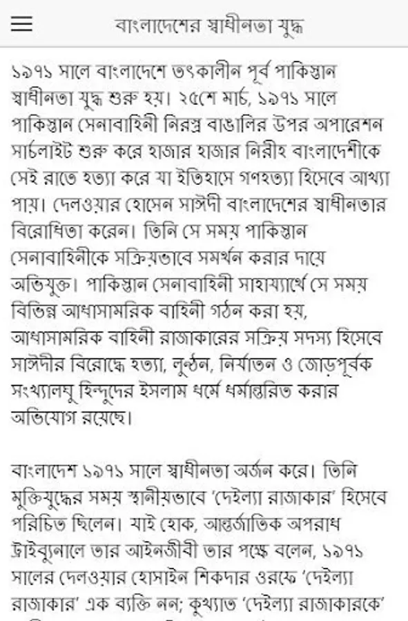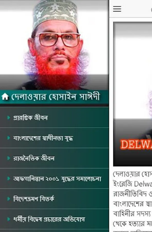 Delwar Hossain Sayedee former name Delwar Sikder; English Delwar Hossain Sayeedi is a Bangladeshi politician and former Member of Parliament; He was sentenced to death in 1971 for joining the Pakistani army as a member of the Razakar forces during the Bangladesh War of Independence and for aiding and abetting inhumane acts such as murder. He is the Naib Amir or Vice President of Bangladesh Jamaat-e-Islami, a political party in Bangladesh.
