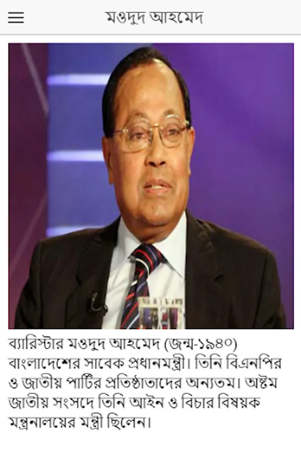 Moudud Ahmed is a well-known Bangladeshi politician and lawyer. He served as Deputy Prime Minister, Prime Minister and Vice President of Bangladesh. Moudud Assisted to Ziaur Rahman and Ershad founding their respective political parties Perhaps he is the only politician who gets the facilities from major two political parties, BNP and Jatiyo Party. Finally, he finds his comfort zone in BNP He won the parliamentary election for five times from Noakhali-5, the same constituency of Obaidul Quader.