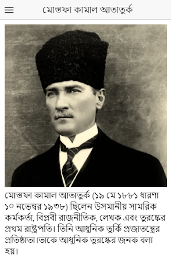 Mostafa Kemal Atatুrk (19 May 181 idea 10 November 1936) was an Ottoman military officer, revolutionary politician, writer and the first President of Turkey. He is the founder of the modern Turkish Republic. He is called the father of modern Turkey. Atatর্কrk was a military officer during World War I. After the defeat of the Ottoman Empire in World War I, he led the Turkish national movement in the Turkish War of Independence.