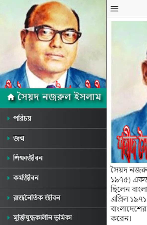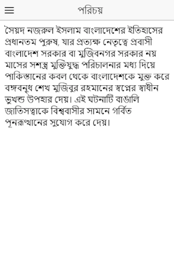 Syed Nazrul Islam, the history of the principal men, led by the Bangladesh government in exile or the attitude of the government to conduct a nine-month war of liberation through armed Pakistan to free the country from the clutches of the dream of Bangabandhu Sheikh Mujibur Rahman presented an independent territory. The front of the world are proud of the fact jatisatbake allowing punarutthanera.