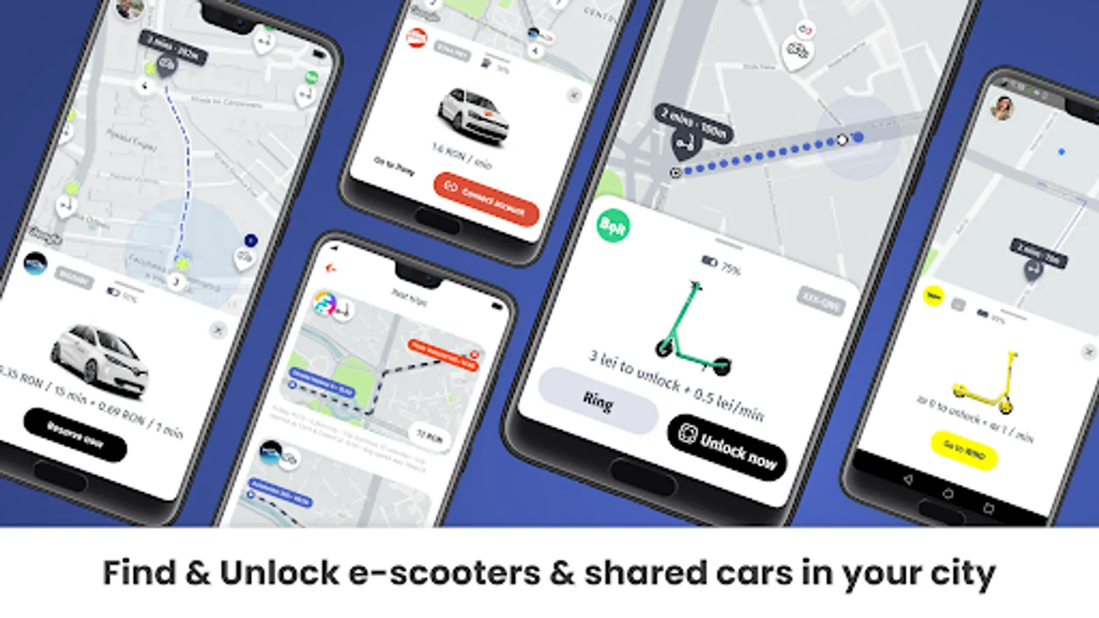 - All-In-One Solution: From e-scooters to shared cars, discover all available rides in your vicinity in a single app.