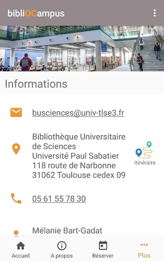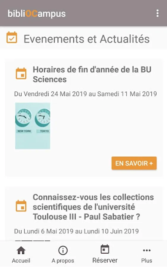 BibliOCampus is the ideal application to keep you informed of news related to Paul Sabatier's various university libraries. Choose your library from : Library Sciences, Library Santé Rangueil, Librabry allées Jules Guesde. Discover this application that will inform you about :
