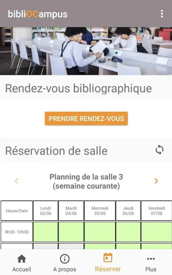 Tired of constantly searching for your library's schedules ? Not knowing which work rooms are available ? Or to wonder if you will have a computer workstation left when you arrive ?