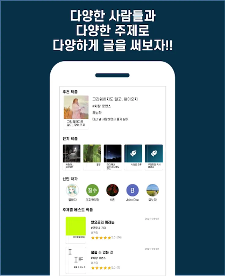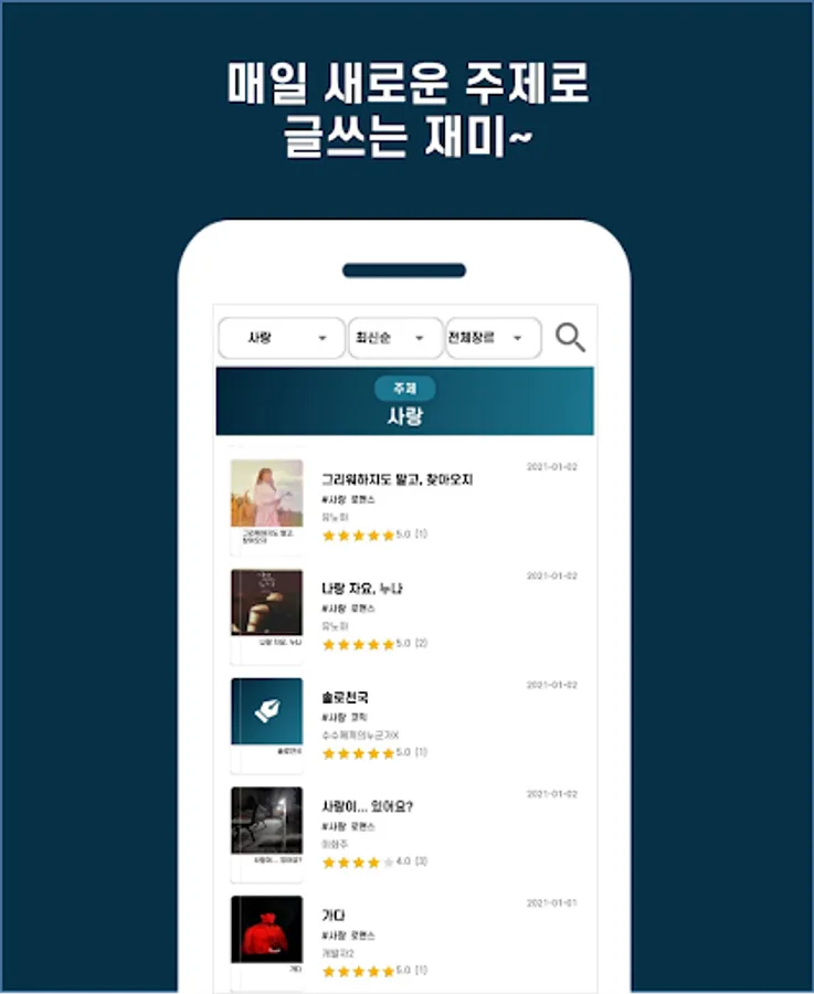 이틀에 한번씩 나오는 주제에 대해 글을 창작하는 앱 입니다.