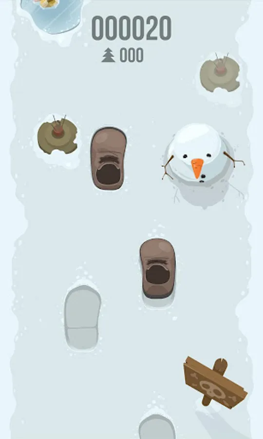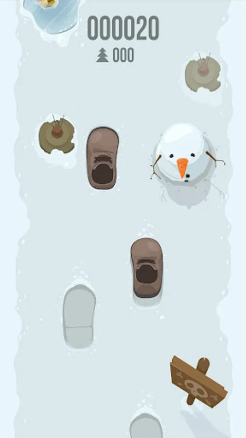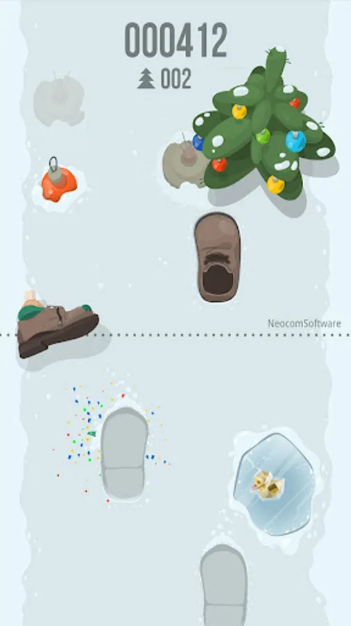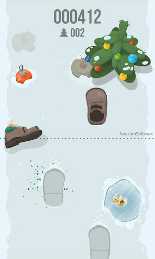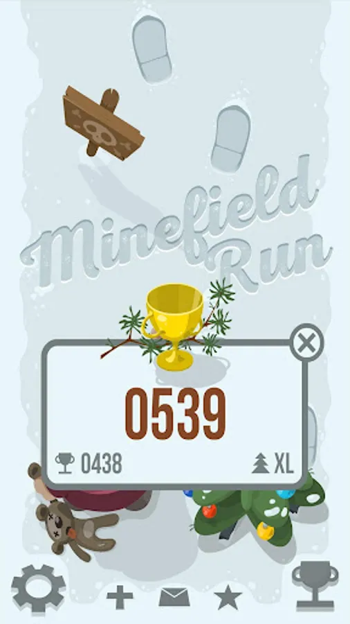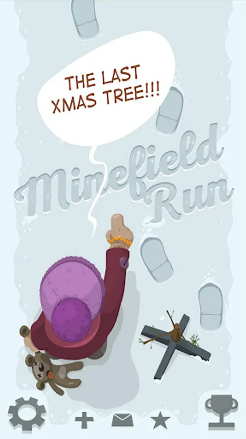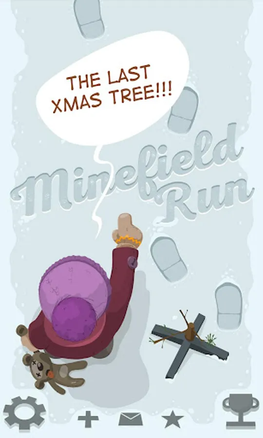 Don't worry! A small minefield separates you from the last Christmas tree. Swipe on the minefield to run as long as possible. When you put your finger (foot) on the screen, you will see a mines near the foot for a short time. Be careful, go around the mines!