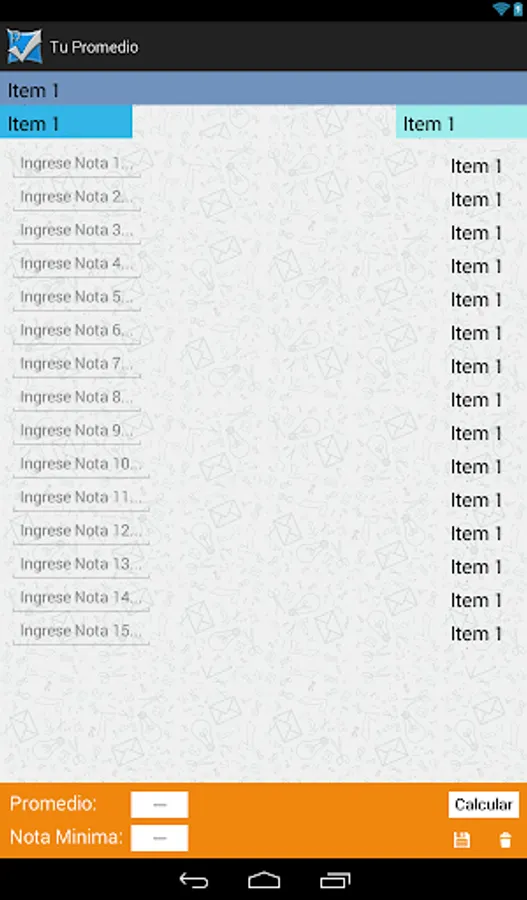 Save your notes and calculate your average along with the minimum grade to pass an exam quickly and efficiently with the precision of a calculator. Note also keeps your controls / averaged to always know your work situation.