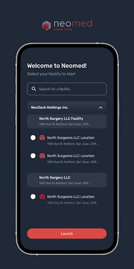 NeoMed Claims Flow Screenshots