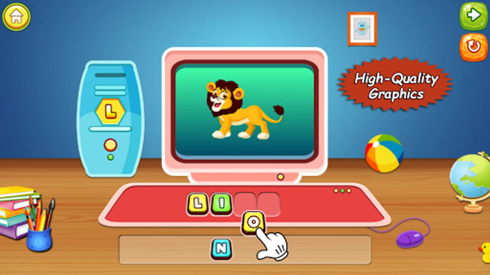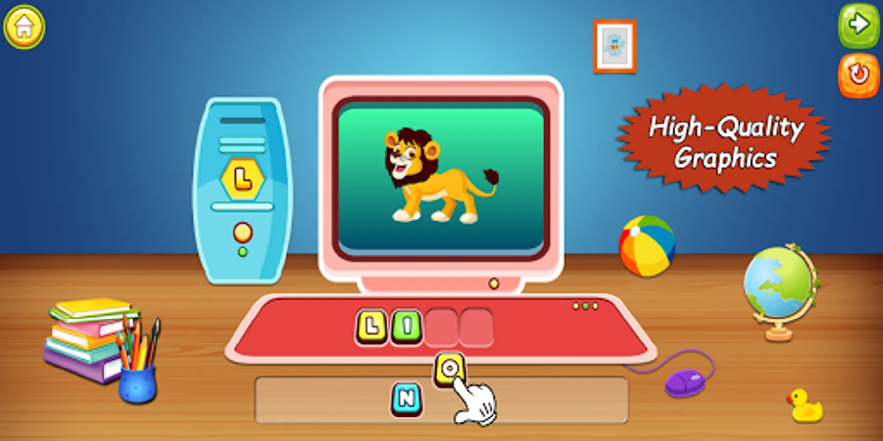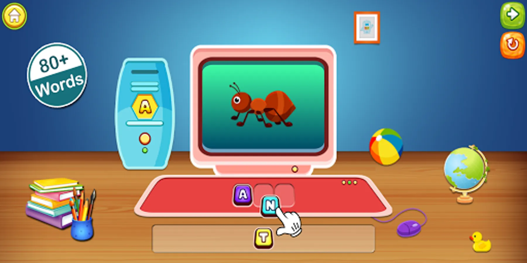 This educational spelling game allows young kids to develop, improve, and practice their spelling skills, build their vocabulary, and learn new words!