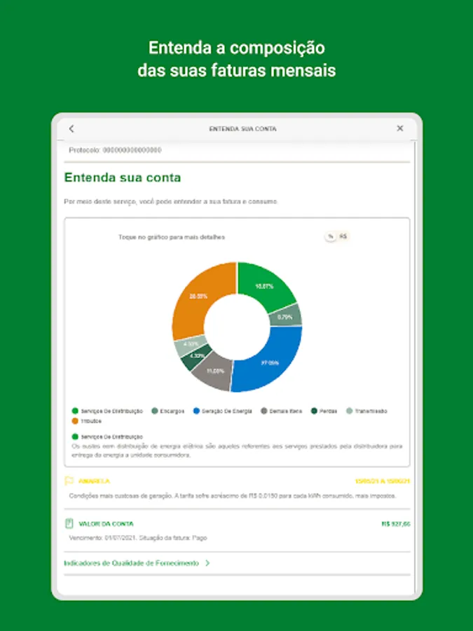 In a few minutes you will be able to: register your digital invoice, make invoice payments, understand the detailed amount of your account, report power outages and much more. Everything you need in a single application, providing Neoenergia's customers with convenience and practicality.