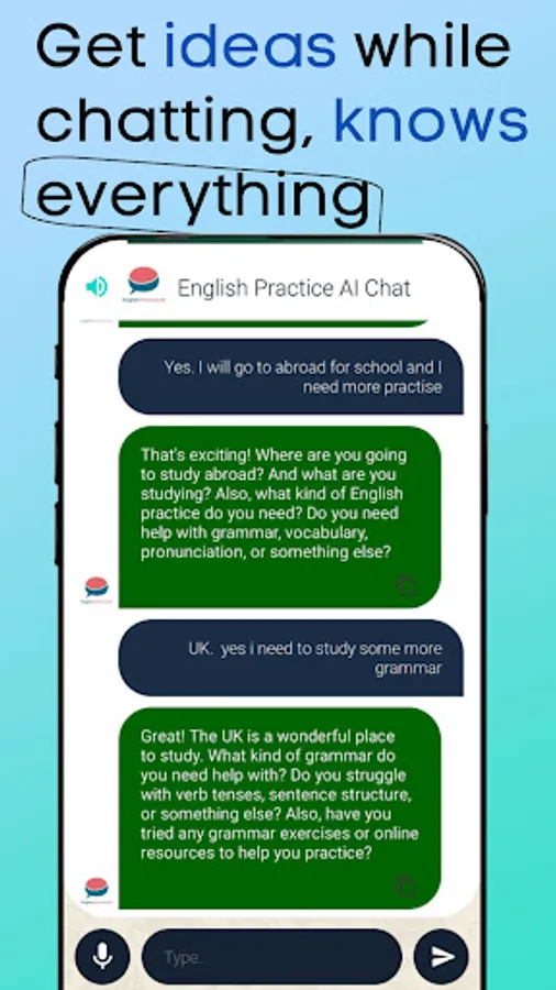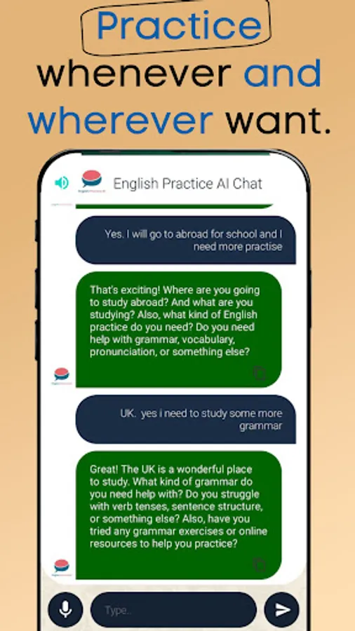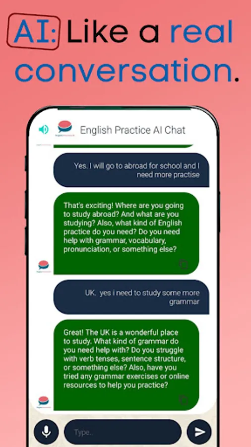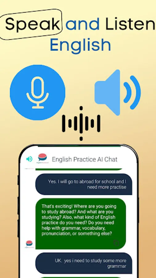 AI-Enhanced English Learning. Do you struggle with American English speaking and accent training? Do you want to learn conversational English in an easy and fun way? Look no further than BuddyTalk, the chatbot English learn app! Our AI English technology is powered by artificial intelligence, allowing you to chat in English and practice conversation with ease. Our AI chatbot, or B.O.T. (Buddy Talk), provides conversational practice and helps you learn English through chatting in English. With chats in English and conversational practice, our app is perfect for those looking to learn American English speaking. Buddy talk is also great for those who want to learn English conversation in general, or for those who want to chat to learn English. Our app is also great for those who want to practice English conversation, whether it's for education or simply for fun. With Buddy Talk, you can learn conversational English and improve your English chat skills, all while having fun chatting in English. So what are you waiting for? Download Buddy Talk, the chatting in English app, today and start practicing your English conversation skills with our AI chatbot! Aprende ingles gratis and chat to learn English with ease thanks to our innovative AI technology. The Ultimate English Learning App Looking for an app that can help you improve your English conversation skills? Look no further than our English Learning App! With features like English conversation practice, English helper, and English learning chat apps, our app is the perfect tool for anyone looking to improve their language skills. Our app offers a range of features to help you learn English quickly and easily. Whether you're a beginner or an advanced learner, our app has something for everyone. With grammar lessons, fun exercises, and personal English experts to guide you, you'll be speaking fluent English in no time. And the best part? Our app is completely free! So what are you waiting for? Download our app today and start your journey to mastering the English language! Looking to improve your English speaking skills? Say hello to our new mobile app, the ultimate tool for practicing and perfecting your English. Whether you want to practice your pronunciation, ask questions and get answers, or just speak and learn English, our app has got you covered. Our app is designed to help you practice better, so you can improve your speaking skills quickly and easily. With our app, you can practice talks, speaking English practice, and speak practice your English, all in one place. So what are you waiting for? Download our app today and start speaking English like a pro!"