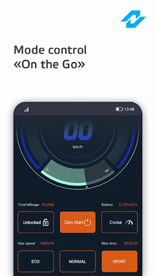 • Real-time display of information about the battery level, current speed, electric scooter mileage, etc.;