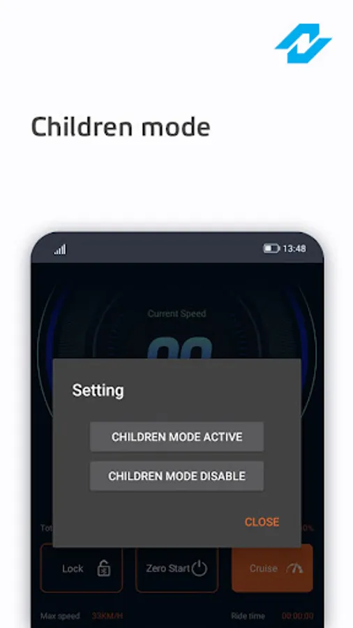 • "Children's mode" — limiting the speed of the electric scooter to 12 km/h. The ideal solution so that the child can independently control the model, and parents do not worry about his safety.