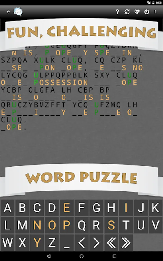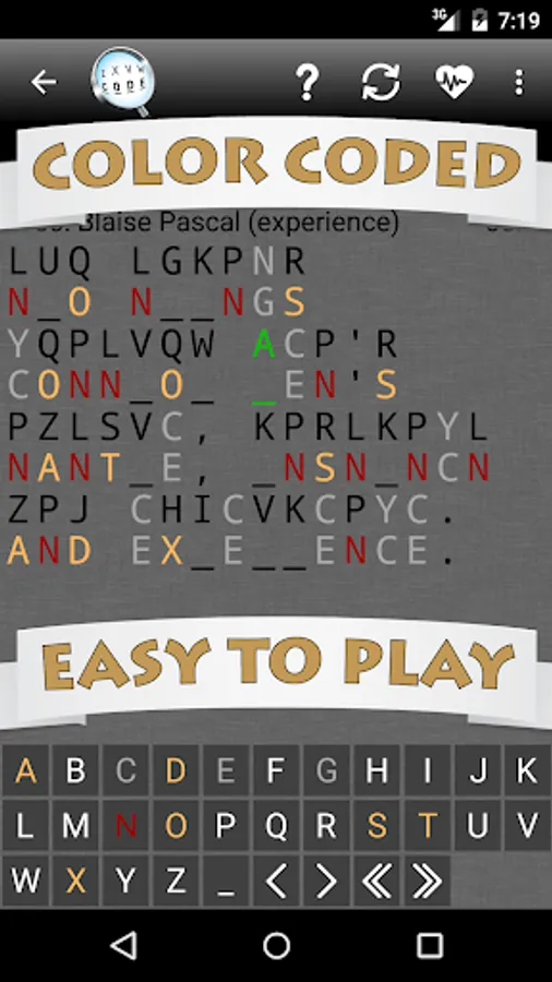 Exercise your mind with our exciting and challenging new word puzzle game, CRYPTOGRAM!