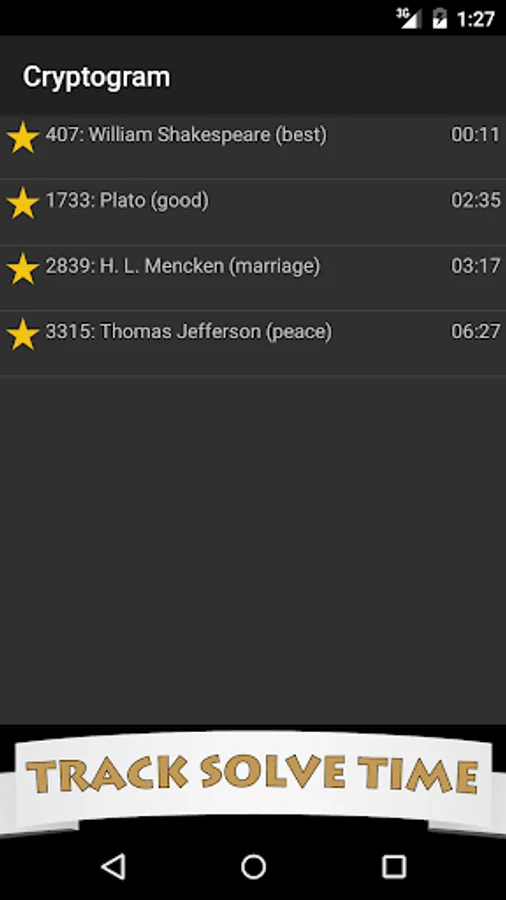 With regular play, we believe you can increase your mental focus, concentration, patience and logical deduction skills, all while learning popular quotes and having fun. If you’ve never tried a Cryptogram before, the first few games may leave you puzzled, but once you get the hang of it your solve time will decrease and you might just find yourself hooked!