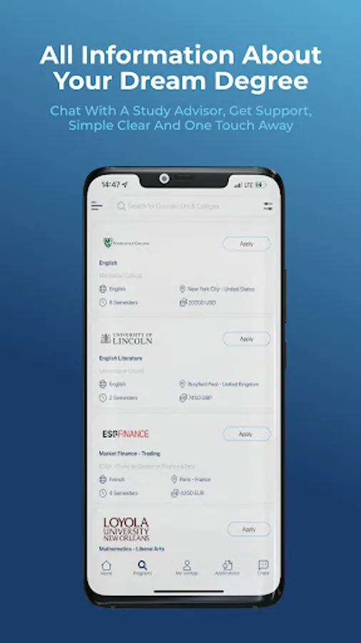 Download the app to manage your entire education application journey, get 1-on-1 support from our study agents to start your dream at the best universities, and easily submit your applications with free support by just using the chat button.